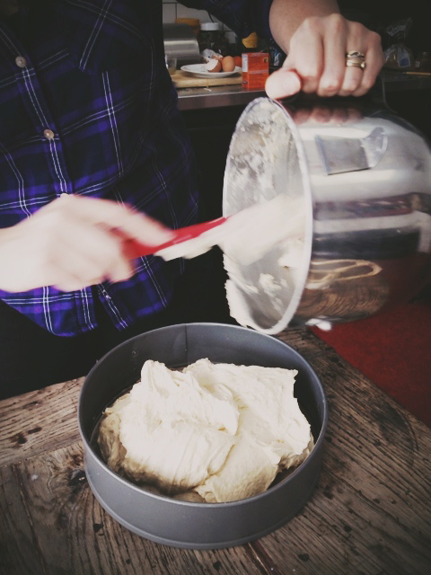1. Preheat oven to 325 degrees. Butter sides and bottoms of 2 8-inch springform pans (I use one 10-inch springform pan); line sides and bottoms with parchment paper. Butter paper. Place pans in freezer.(I skipped the freezer)