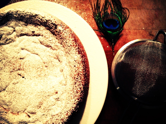 From Amanda’s article: “Elizabeth says: ”This is the Shar-Pei of cakes. It doesn’t look very pretty; it crumbles on the edges and invariably falls in the middle. No matter — it’s still delicious. Store in a covered tin in or out of the fridge. It improves with age and can be made 1 to 2 weeks ahead.” When ready to serve, sift powdered sugar on top and slice like pie”.