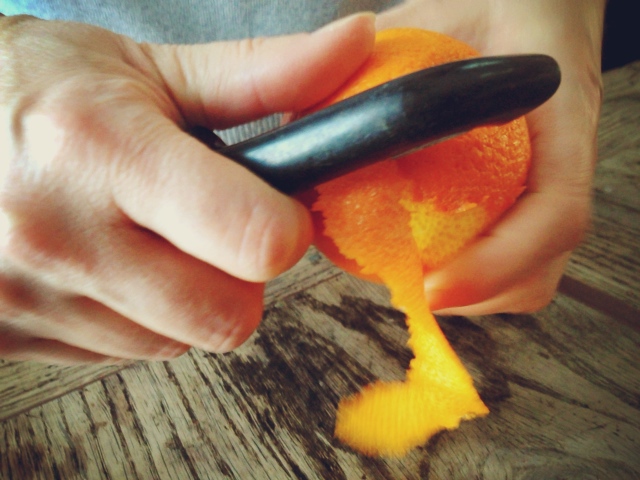 Orange peel, from one organic orange, cut in thick strips, pith removed