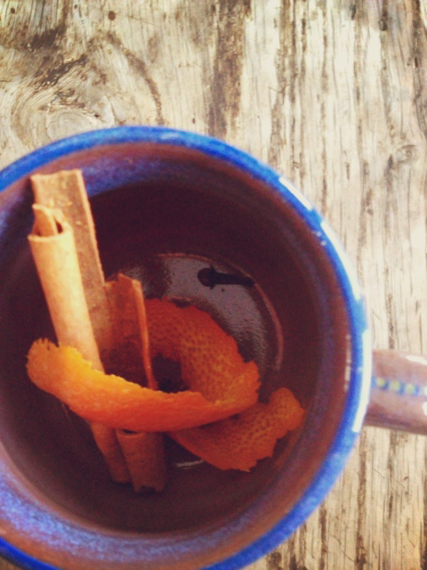 My go to sore throat tonic: hot buttered rum for one. As a kid, my favourite life saver flavour was butter rum, but the cloying candy version is a pale reflection of the adult liquid version. This drink is like fruit cake in a glass – but in a good way – dark with cinnamon and cloves, a little nutmeg to keep some mystery, brown sugar to enhance the taste of molasses in the rum and butter to coat chapped lips and a sore throat with a soft, warm, oily slick. Its effect does cause you to withdraw in upon yourself, tucking legs beneath you on the couch, hugging the hot mug with two hands beneath your face to fully experience the orange and spiced steam. The warmth, drinking it, radiates to the tips of your toes. With every sip, there’s a greater assurance that all is right with the world.