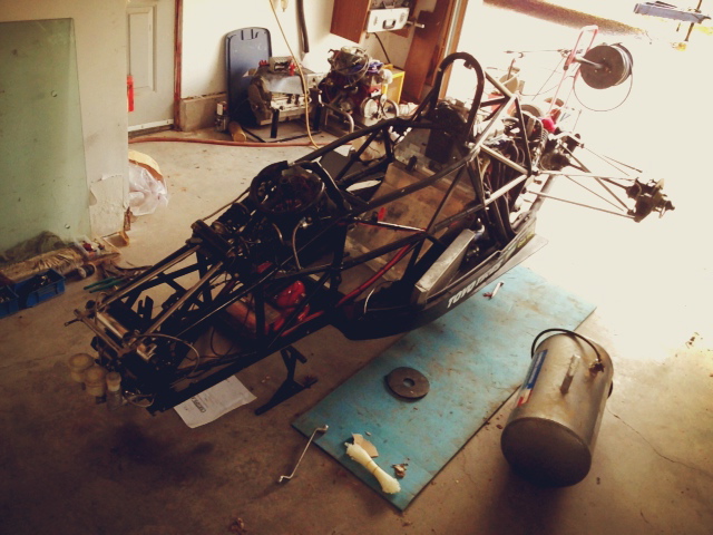 My plan for making coffee butter cream one evening was derailed when I wasIMG_2721 asked [wife edits: forced] to help squeeze a fairly rigid, rubber, bladder -looking thing, underneath what was, apparently, the driver’s seat (a bent piece of aluminum with a lip that refused to budge). Both of us were red faced afterwards from the effort [wife edits: and the anger]. “what is that thing anyway?”, I asked, pointing to the deflated balloon. The gearhead peered down his grease smeared nose, his glasses all akimbo, and with a patience I recognized was being pulled from the extreme edge of civility, he answered, “the gas tank”. [wife edits: Great! Just great! The coffin on wheels has been engineered so that you’re sitting on top of a bomb. I’ve said it before – you either die in that thing or you do not. There is no halfway!] I left him smoldering in the garage, returning to the kitchen to create the miracle that is butter cream.