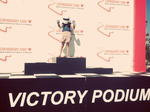 Andretti – names that even I recognize – have raced there: Mosport. And now, the Gearhead. I watched as he was strapped into the car, his neck secured in a protective device, the harness, like a child’s seat, clipped together between his legs. As the car roared to life I thought I was going to throw up. At least it was a different sensation to the embarrassment I had felt upon arrival when the gearhead was strutting around his car trailer in what I thought was his long underwear. Turns out it was his “under” “wear” – the required fireproof clothing worn beneath a race suit. Here’s a snazzy clip that includes him at the start of the race [wife edits: fully dressed] (he appears at the 22 second mark). I was really quite frightened when he was out on the track with the 23 other hooligans all vying for the checkered flag. I wondered if his life insurance covered such outrageousness.