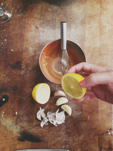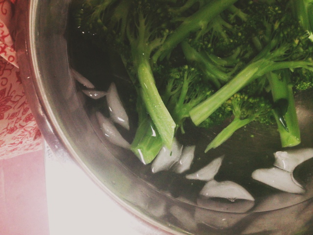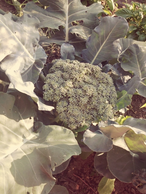 amount of fear that I approached the next plant (no smell this time). And when I cut into it? Perfect. No slime. I prefer to blanche our home grown broccoli – the cabbage moth caterpillars are so wonderfully camouflaged, only a quick dip in boiling water will flush them out, petrified. None this time though – it’s too early I guess. Plunge the blanched broccoli in ice water and then toss it in a strongly flavoured vinaigrette composed of lemon juice, garlic and olive oil. Fear be damned. Pass me my crown. I’m ready to wear it again.